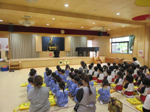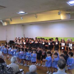10月22日、年中、年少組でつかのめの里のおじいちゃま、おばあちゃまに会いに行ってきました。みんなの元気を分けに、体操、合奏、歌などの発表をしてきました。おみやげもいただき、ありがとうございました。寒くなってきましたがお身体を大事にお過ごし下さい。