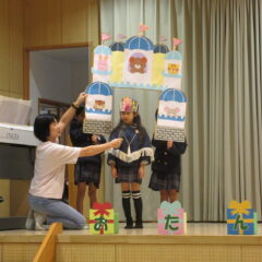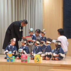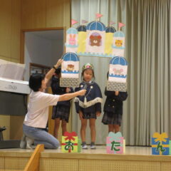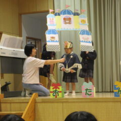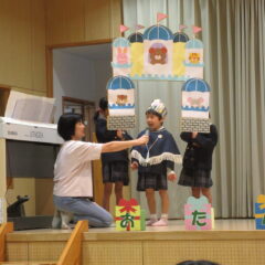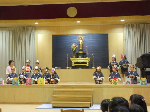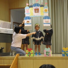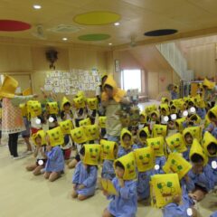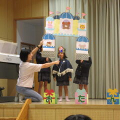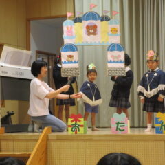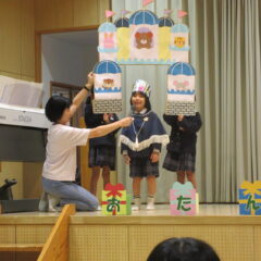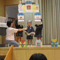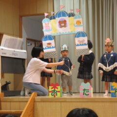 10月16日、10月生まれのお友達のお誕生会。全部で12人のお友達、お誕生おめでとう!そしてアトラクションはいちご組さんが楽しい手遊びを見せてくれました。