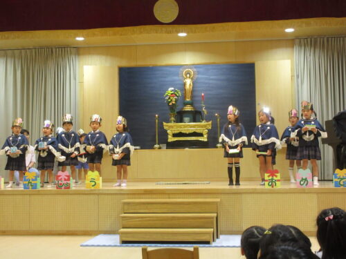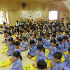 10月23日、地震の避難訓練をしました。中越地震から21年。みんなの住んでいる新潟県でとても大きな地震があり、(系列の)お友達の幼稚園もとても大きな被害がありました、と園長先生からお話いただき、みんなでおまいりをしました。