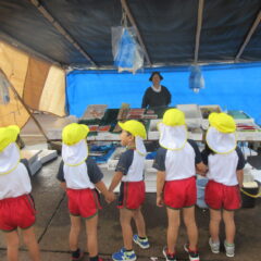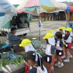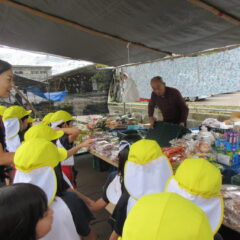 10月17日、年長さんが市日に見学に行きました。野菜、果物、魚、お菓子、お花、洋服、と沢山の品物が売られていたところを見せていただきました。帰って来てみんなで相談して「今度の市日にみんなで買い物に行きたいので、園長先生お金を下さい!」と園長先生に直談判しておりました。次の市日が楽しみだね。