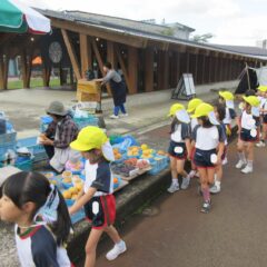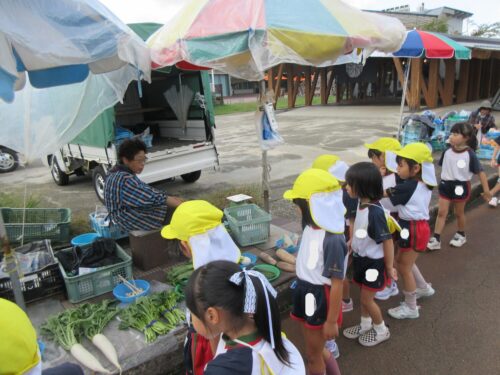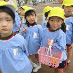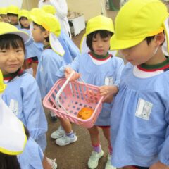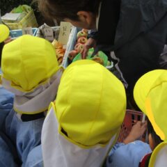 先日、市日見学で「あれ買いたいな」「果物がいいよね」と園長先生にお願いし買い物を実行してきました。話し合いで「柿」「みかん」に決定しました。お店の方々はとても優しくおまけもして下さいました。ありがとうございました。みんなで美味しくいただきました。