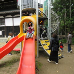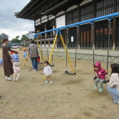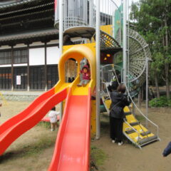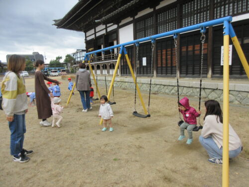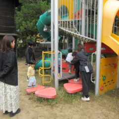 10月21日の親子広場は「戸外で遊ぼう、園庭散歩」ということで、お家の方と一緒に園庭に出て遊具で遊んだりしました。楽しかったかな?