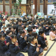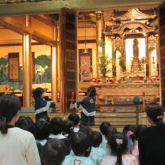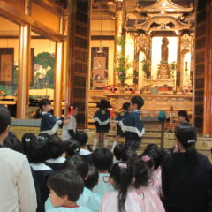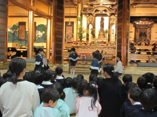 10月28日、本堂に親鸞様御命日のおまいりに行ってきました。上手におまいりできたね。