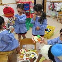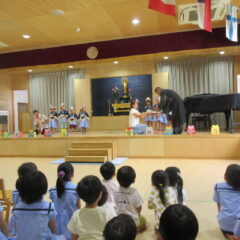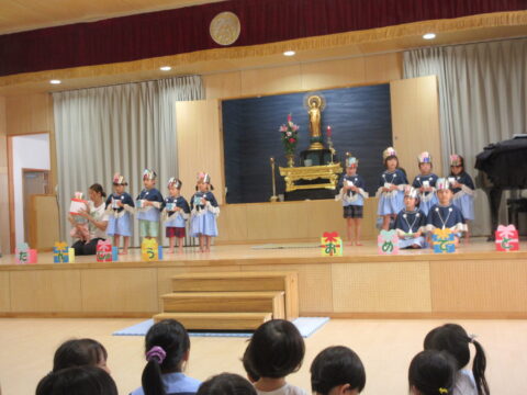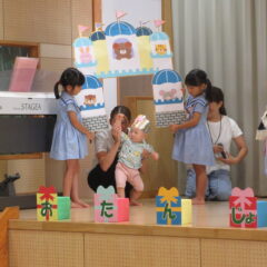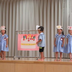 9月11日、9月生まれのお友達のお誕生会(アップしておりませんでした。ごめんなさい!)。全部で12人のお友達(残念ながら1人のお友達がお休みでした)、お誕生おめでとう!アトラクションはすみれ組さんがお歌に合わせて素敵なケーキを作ってくれました。