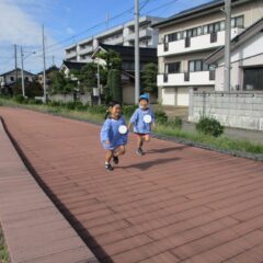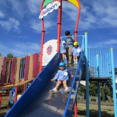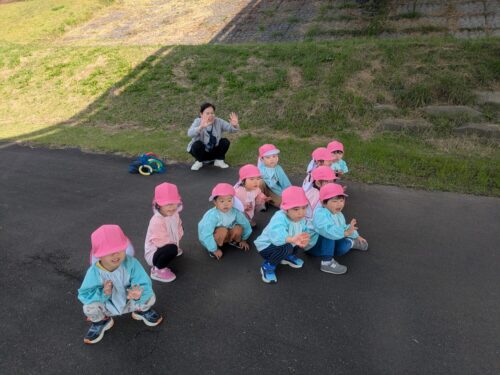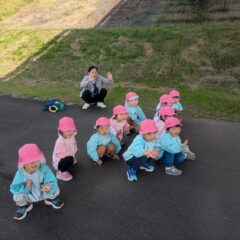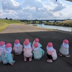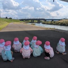 いちご組さんは川原まで歩いてきました。そして電車が走ってきたね。バイバ~イ!