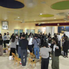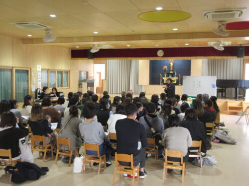 11月12日、まつば会主催の修養講座が年少さん、年中さんの保育参観の日に併せて行われました。講師は関﨑智弥先生。「子育ち 親育ち」の親業についてお話をいただきました。はじめに参加の方々からジャンケンをしてもらい勝ったらその人から名前を書いてもらい3人分集めたら並び始める、というゲームをしました。その中でも実際やってみたら「○と伝えたのに□としてとらえてしまう」ということもある、ことがわかり、親と子の考え方が同じではないということになる、などたくさんお話を聞かせていただきました。