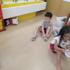 次の日に焼き芋をするため、年長さんが秋に収穫したさつまいもを洗ってくれました。全園児、全職員分となると沢山のおいもになりましたが、一生懸命年長さんが洗ってくれましたよ。明日が楽しみだね。