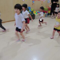 次は~、布草履を履いて室内持久走。布草履を履く初日のようですね。上手に履けたかな?