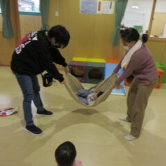 12月16日の親子広場は「タオルで遊ぼう」でした。タオルを使ってブーランブーランとゆりかごのようにしてもらったり、親子で引っ張り合いっこしたりと楽しく遊びました。令和7年の親子広場はこれでおしまいです。1月は13日(火)「まつば会みんなで歌おうの会の発表」、20日(火)は「リトミックしよう」となっております。又一緒に遊びましょう!待ってまーす。
