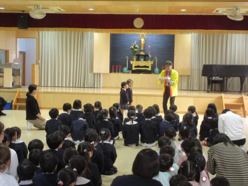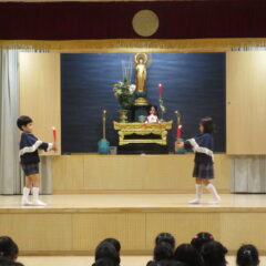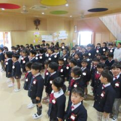 12月23日、無事に2学期終業を迎えることができ、みんなでののさまにありがとうのおまいりをしました。明日からは冬期休業。預かり保育、希望保育に参加のお友達もいますが、家族そろっての良いお正月をお迎えください。そして3学期始業日に待ってますね!