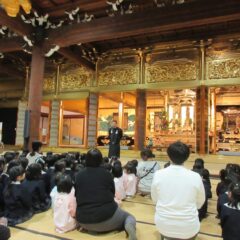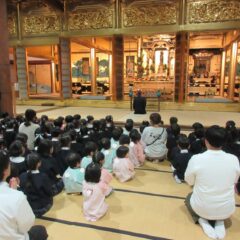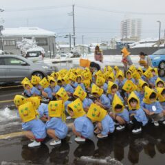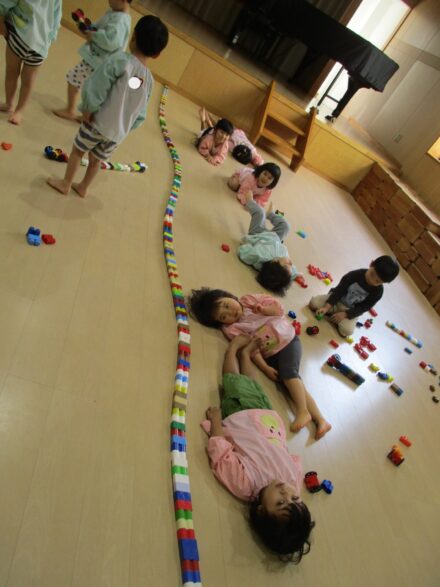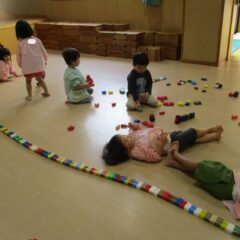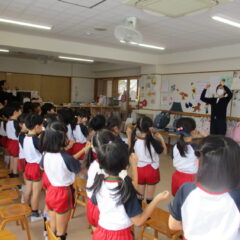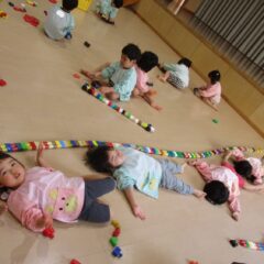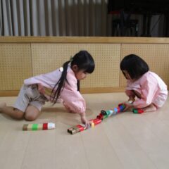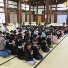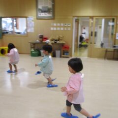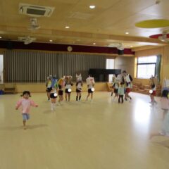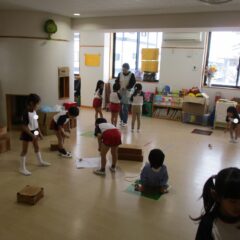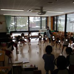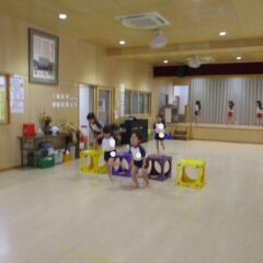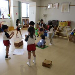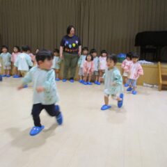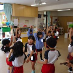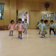 こちらは発表会遊戯、舞踊劇を練習しています。(12月の発表会でインフルエンザが大流行し、欠席したお友達が年長さんに多く、1月の保育参観でおうちの方に再度、発表しようということになり)
