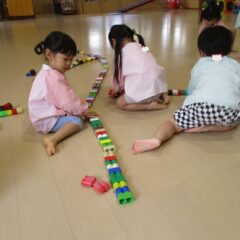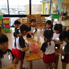 今度は先日行ったまちやまの真似をして「まちやまごっこ」が始まりました。ドリンクバー作りが始まりました。