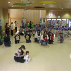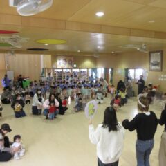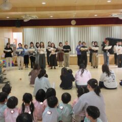 1月13日の親子広場は、「みんなで歌おうの会 発表」ということで、幼稚園のおうちの方々(有志)が5月から練習してきたお歌を披露してくれました。幼稚園で歌い継がれてきている曲、小さい子が好きな曲、リズムに合わせて踊る曲、など様々な発表をしてくれました。お土産までいただき、良かったね。