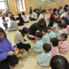 12月23日、社会福祉協議会の方にお越しいただき、年長組が中心になって集めた歳末助け合い運動の募金をお渡し致しました。ご協力、ありがとうございました。